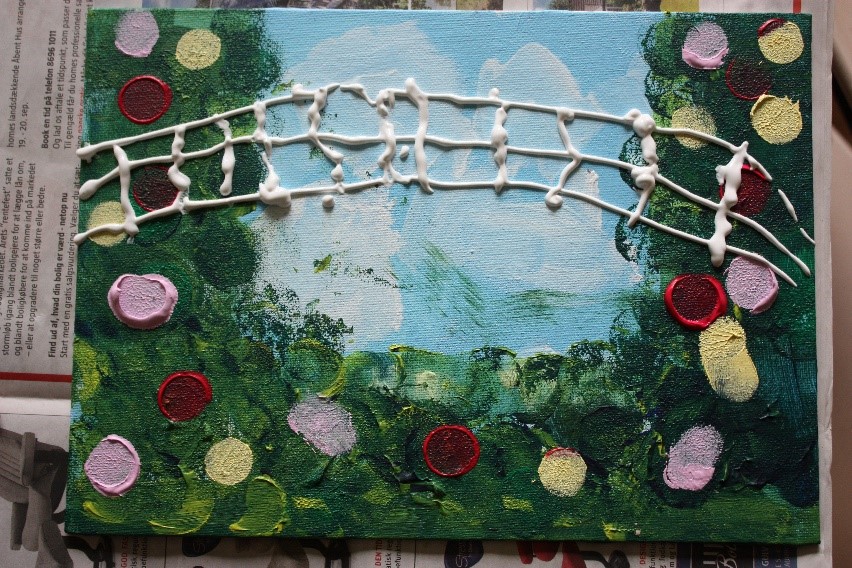 I dette efterår kan man se Monet på ARoS. Jeg skulle lave et forløb til en børnehave, som havde planlagt, at tage til ARoS, for at se udstillingen. Vi besluttede, at der skulle laves billeder, som var inspireret af Monets "Den japanske bro".